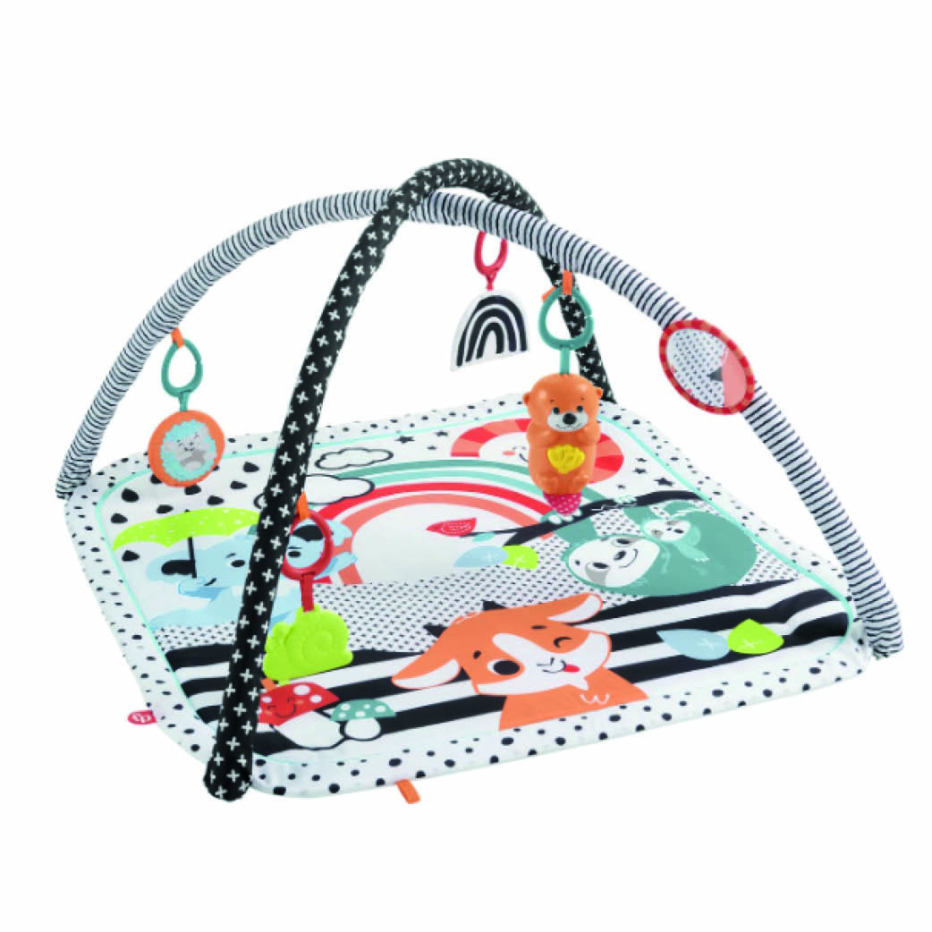 Een babygym is een essentieel hulpmiddel voor de ontwikkeling van je baby. Het stimuleert zintuigen en motorische vaardigheden, bevordert nieuwsgierigheid en leert je baby belangrijke vaardigheden zoals grijpen en rollen. Een veilige, kleurrijke en interactieve speelomgeving voor een gezonde groei en een gelukkige baby.”